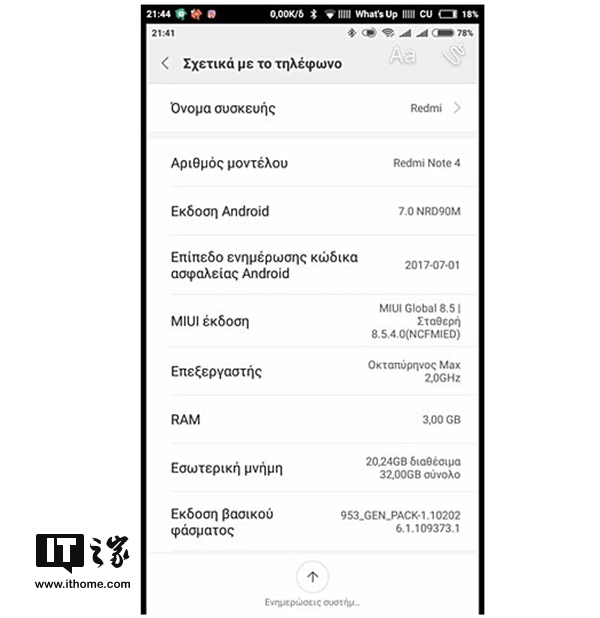 IT之家8月10日消息,据外媒报道, 小米已经开始向红米Note 4推送更新。更新包的大小1.3GB左右,在希腊,部分红米Note 4已经更新完成,截图显示,更新后的系统正是期待已久的安卓Nougat(安卓7.0)。
