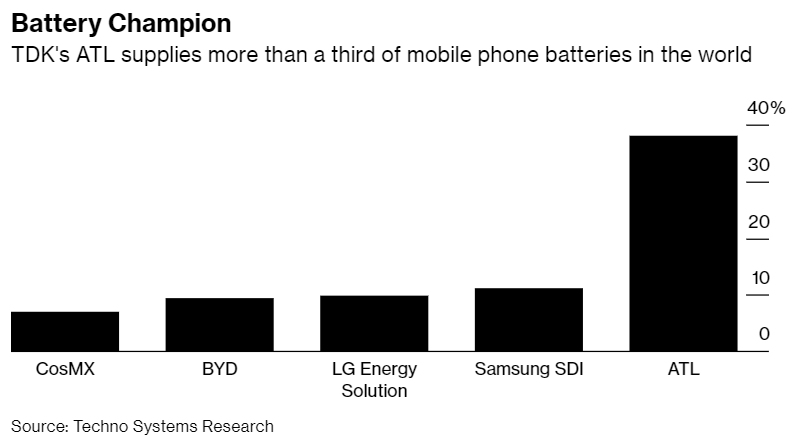 苹果供应商TDK:未来五年内锂电池业务收入将翻番