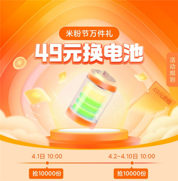米粉节福利!小米推49元换电池活动:每天10点开抢