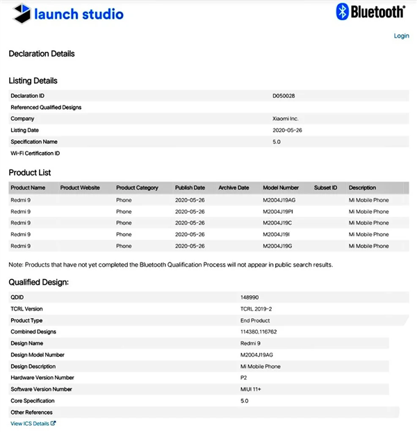 5月26日,据外媒报道,Redmi 9已经出现在蓝牙技术联盟(Bluetooth SIG)的数据库中,这意味着该机有可能最早在下个月发布。
