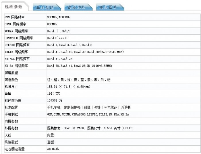 该手机将有红色、橙色、、绿色、青色、蓝色、紫色、黑色、白色和粉色。三摄像头设置是由一个 6400 万像素的主摄像头和两个 800 万像素的副摄像头组成的。外媒猜测其中一个可能拍摄超广角照片,但另一个可能是 5 倍长焦,正如之前的报道。它还被列为具有一个屏下指纹扫描仪。