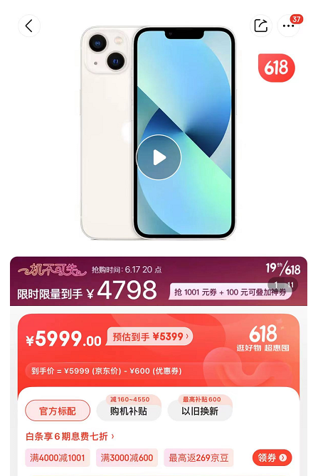 但让鲫鱼没想到的是,今年这波 618 的降价,来的这么快这么直接,几家电商巨头针对 iPhone13 的价格,莫名展开了狂卷。。。