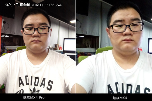 拍照体验方面我们还从前置镜头开始,因为本次魅族 MX4 Pro在前置镜头方面由原来的200万像素提升到了500万像素。魅族 MX4 Pro采用F/2.0超大光圈的500万像素主镜头,我们在样张当中可以明显看到广角的前置镜头可以拍的更广,而魅族MX4则完全看不到三叶草LOGO。由于使用了Face AE的面部增亮技术,魅族 MX4 Pro面部颜色更接近肉眼效果,相对魅族MX4还原度更高。