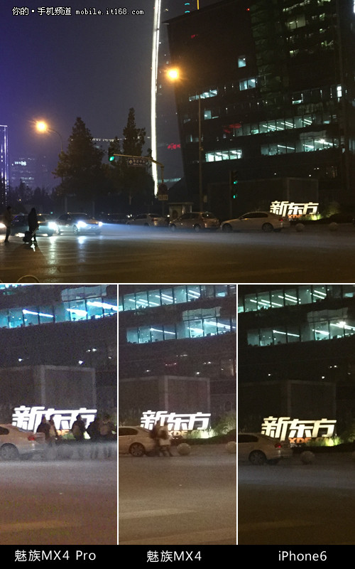 我们刚刚讲到苹果iPhone6将亮度降低从而实现更好的控制噪点吗,所以我们在这马路对面灯箱的样张中就可以看到的明显的差别,这里苹果处理的效果最好。另外,如果仔细看,也可以看到魅族 MX4 Pro与魅族MX4有些小的差别,Pro在噪点控制上要更好一些,但我们认为这样的提升并不明显。