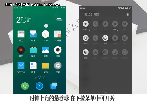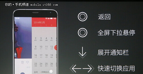 众所周知,从MX3开始魅族就在推广手势操作,诸如后台呼出以及返回键都需要在Home键周边区域进行滑动来完成。而这也是魅友对于小圆圈恋恋不舍的原因之一,毕竟能从安卓“三个按键”解脱出来,魅族算得上是独树一帜。不过这次小圆圈变成了指纹识别,不太平整的机身下半部分,其实会阻碍这种手势操作的顺畅感。为解决这一问题,魅族搬出了悬浮球。