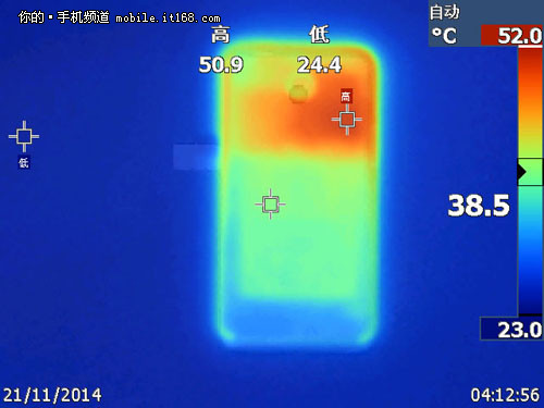 通过30分钟的优酷在线视频我们可以两款机器的发着部分均为背面右上侧,此处为处理器部位。虽然搭载八核芯片魅族 MX4 Pro要比的魅族MX4温度高上一度,但处理器的运算能力也要强出不少,例如2K+屏、指纹识别、语音唤醒、双通道ISP等等。