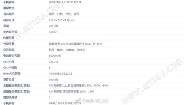 正面屏幕为6.517英寸、分辨率为1600×720,支持侧边指纹识别,机身内置5000mAh电池,支持10W充电,不送充电头,厚9.3mm,重201g。