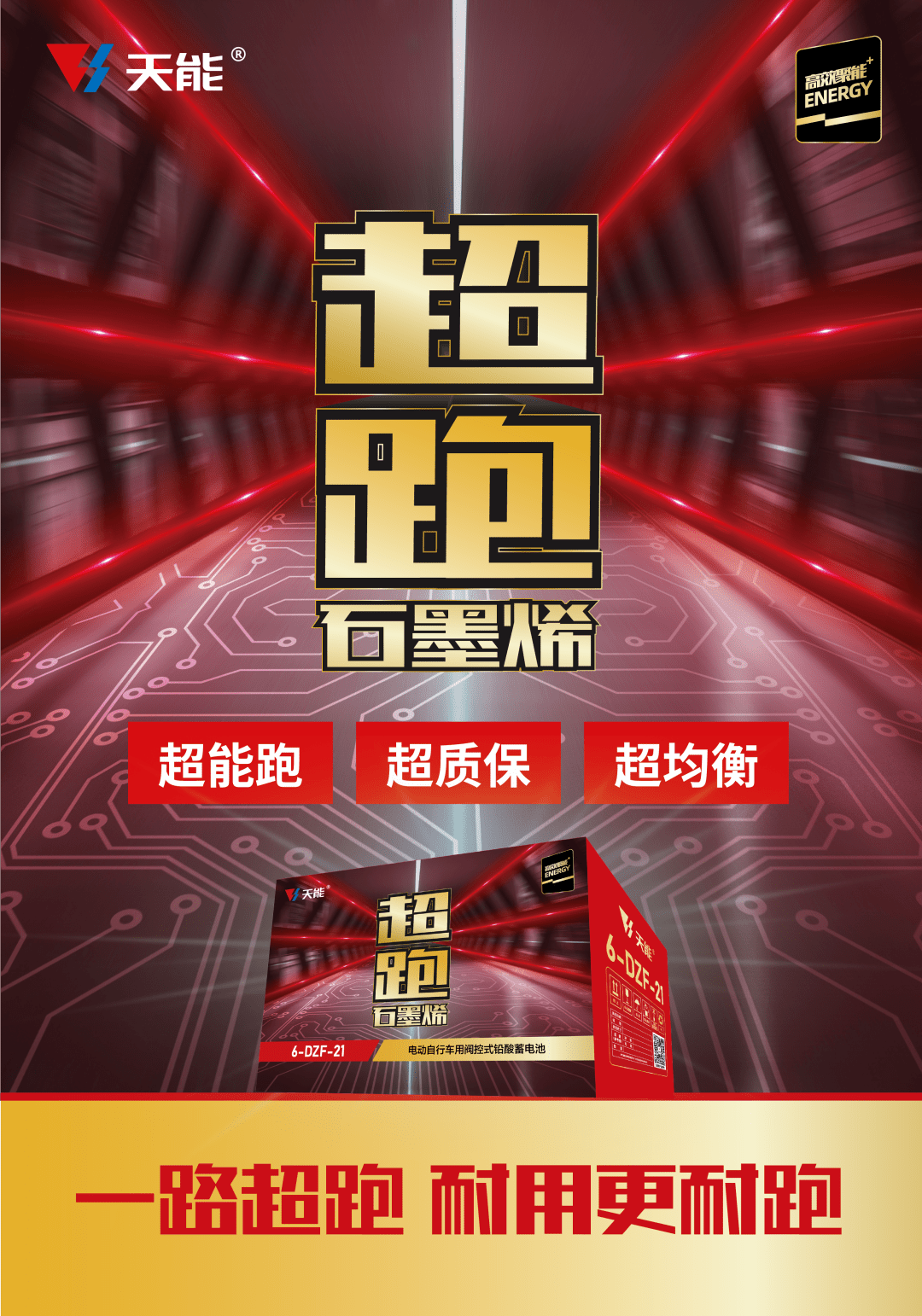 天能超跑石墨烯电池是天能2022年发布的尖端科技力作,搭载天能衡科技,相比普通电池稳定性提升70%以上;采用高能量石墨烯复合改性材料,大幅提升提高电池的循环寿命、高倍率充放电和低温性能,行驶里程增加20%。