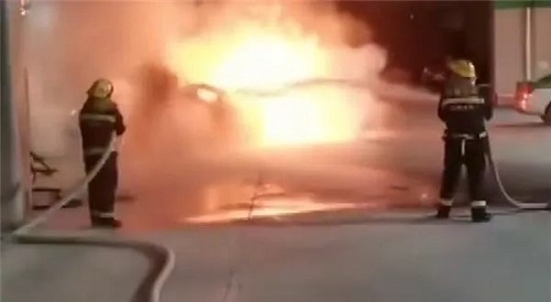据现场拍摄的画面来看,起火时火势非常凶猛,几乎将整台车完全吞没,周围就是充电桩,旁边还挺有前来充电的运营车辆,不过好在由于时间是凌晨,充电站内并未有太多其他电车。虽然站内工作人员使用了灭火器,但电动车起火除非使用大量的水,否则很难被扑灭。