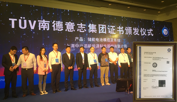 :2017年4月24日,上海中兴派能能源科技股份有限公司(以下简称“中兴派能”)大型高压储能系统及模组获得TÜV南德意志集团(以下简称“TÜV SÜD”)认证并颁发证书,该款产品通过IEC 62619:2017认证,并由TÜV SÜD对生产环节进行了监督检查,表明该款产品符合工业用锂蓄电池和锂蓄电池组的安全标准要求。中兴派能也是国内率先通过权威认证的储能电池厂家。