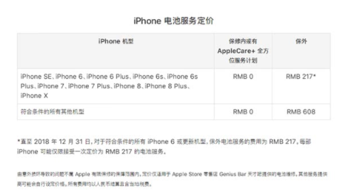 据悉,苹果是在iPhone 6/6s降频门大规模爆发后正式对电池更换价格做出调整,预计将持续到2018年12月31日。