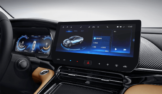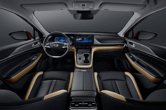 绎乐在车内依旧与Aion S有着极高的相似度,两幅方向盘、双12.3英寸大屏都是熟悉的配方。不过优化过后的悬浮中控屏幕更为独立,同时换挡机构也变身为“本田化”的按键式,中控台也融入了更多的条纹来进行装点,再加上仪表板贯穿式氛围灯与门饰板发光面板、多处储物/足部等区域搭配投射灯,绎乐车内的细节和氛围感做的比较到位。