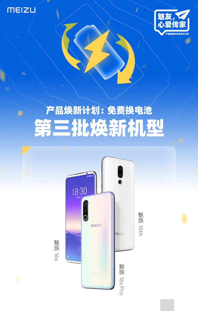 值得一提的是,#魅友,心爱传家#「产品焕新计划:免费换电池」活动惊喜再来,魅族16s系列、魅族16th、魅族17系列返场登记开启,上一次错过登记的魅友快快前往登记