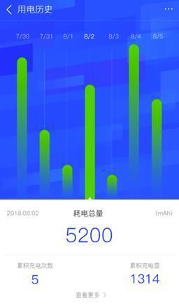 有了这项数据,对于很多用户最在意的“手机是否耗电速度变快”,用户就可以清晰地了解到手机在一段时间的用电情况。