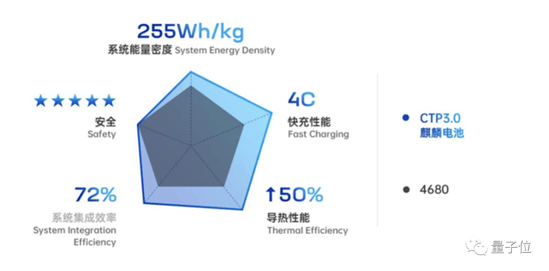 而麒麟电池的CTP技术,把系统集成度、安全性、能量密度做到了极致。体积利用率突破72%,能量密度可达255Wh/kg,将会是市面上能量密度最高的量产电池包。