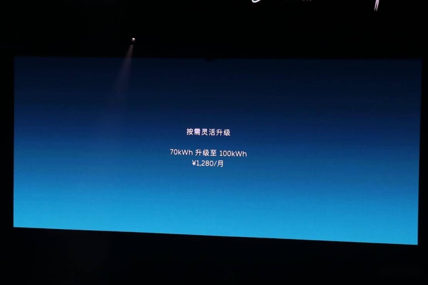 另外,有换电站做背书的蔚来汽车还提供灵活的电池租赁服务,这个按需灵活升级的意思就是当你需要长途出行的时候可以根据自身的用车环境去租赁 100kWh 电池组,每个月收费是 1280 元。