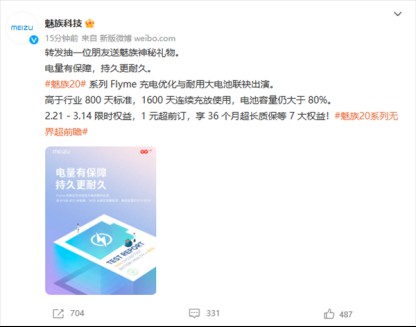 魅族20系列电池寿命曝光!53个月连续充放仍大于80%