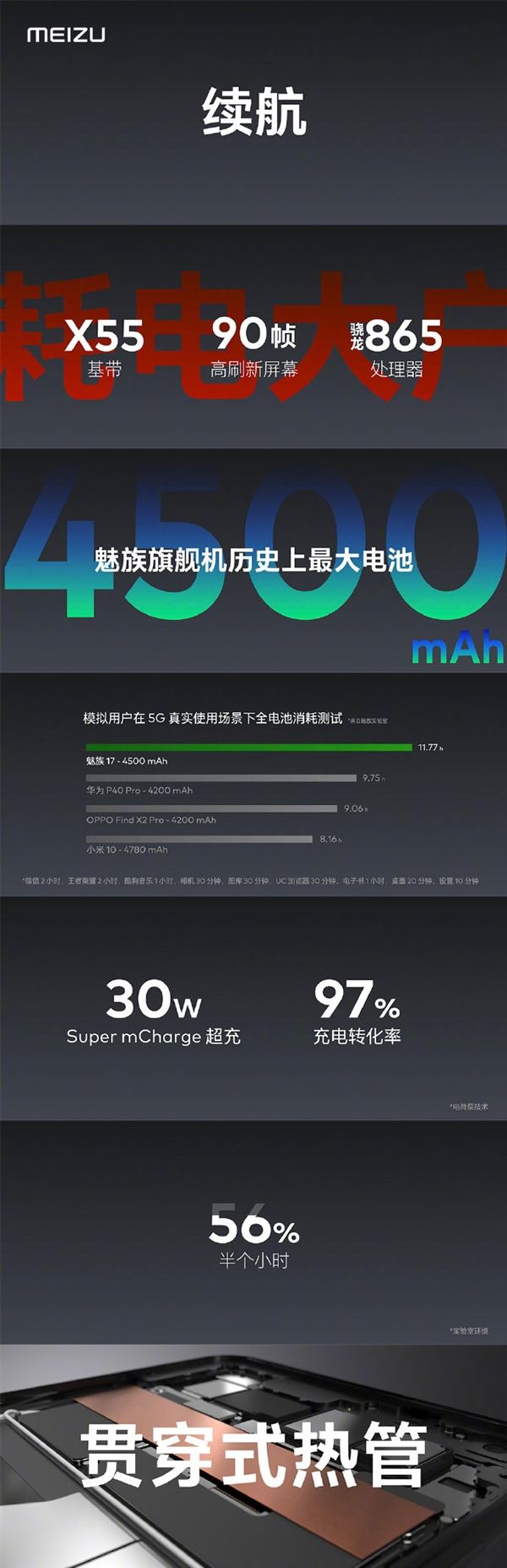 魅族旗舰机史上电池!魅族17半个小时能充入56%电量