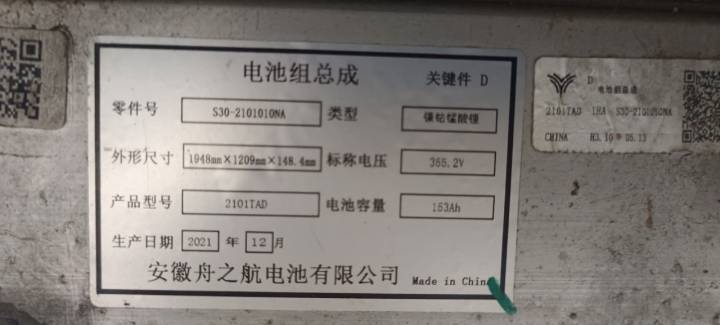 续航不足、充电也慢,用车体验十分不爽的厉先生把车开到了检测站进行检测。这次,厉先生突然发现他的车配备并不是宁德时代电池,而是产自安徽舟之航电池有限公司的电池组。