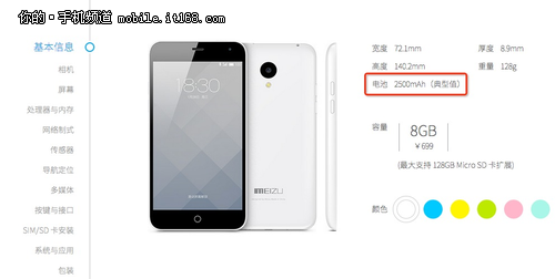 699元魅蓝手机配置调整 电池变更为2500