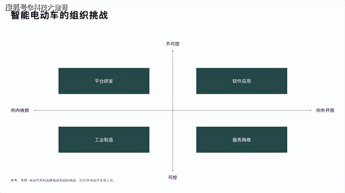 进入汽车行业后,我们发现难度比最开始想象的要大得多。我们将一个组织所要从事的业务,以及会面临的方向进行了简单的分析规划。这和我在2021年1月的电动汽车百人会论坛上分享的是一样的。通过这张图表能够看出来,作为一家刚进入汽车行业的企业,我们同时要变成四类不同的企业,而且这四类不同的企业,所面对的问题复杂程度也是完全不一样的。
