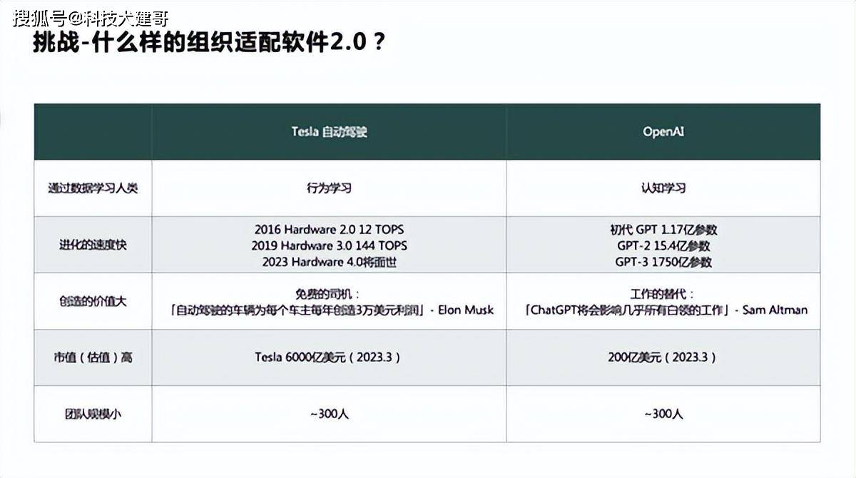 第一个是特斯拉,目前的人工智能分为两种学习方式,一种是行为学习,也就是训练“大”脑,让“小”脑工作,也就是像自动驾驶。另一类是训练“大”脑,让“大”脑工作,类似OpenAI和ChatGPT。