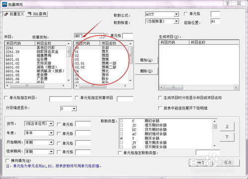 3、在【设置公式取数参数】界面中的‘开始期间’、‘结束期间’设置为当前账套会计期间或默认为0,单击【确定】,此时可见报表右下角的‘会计期间’有所变动