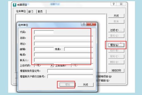 3、核算项目:在此增加往来单位、部门和职员的资料。 在“往来单位”页输入往单位代码和名称。